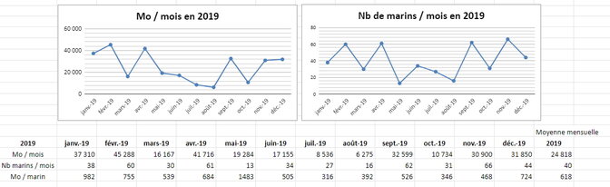 Tableau récapitulatif des activités d’accueil réalisées par les bénévoles pour les marins rencontrés au foyer et lors de visites sur les navires.