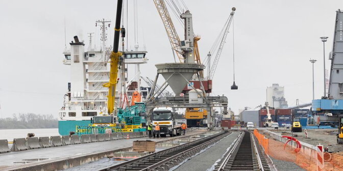Au port de Bordeaux, le terminal à conteneurs entre dans le XXIe siècle. La première phase des travaux de restructuration du quai de Bassens s’achèvera fin juin 2021. La modernisation de ce terminal, avec ses quais, sa zone de stockage et ses hangars, constitue l’un des piliers de la stratégie de développement du Grand Port Maritime de Bordeaux. Lors de son arrivée, fin 2019, le directeur général, Jean-Frédéric Laurent, a fait de cette infrastructure la priorité de son ambition de reconquête du marché. L’objectif affiché est d’augmenter la surface de ce terminal, de 60 000 m² à 88 000 m², en le modernisant pour espérer passer, à terme, de 30 000 conteneurs à 80 000. Coût total des travaux : 22 millions d’euros.