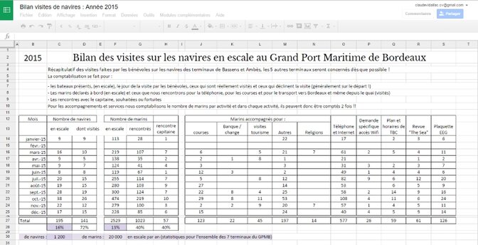 - Agenda partagé, Bilan des visites sur les navires en escale, Site Seamens’club EEG : Ces trois supports disponibles à nous tous sont les relais de nos actions et de notre visibilité